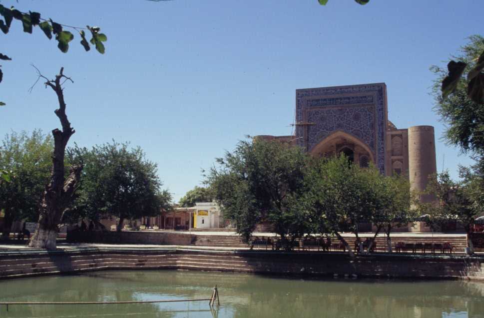 ![]() Statue soviétique représentant Nasreddin Hodja (Boukhara, 23 août 2004) ![]() La place Liab-I-Khaouz et la khanaga Nadir Divanbégui (Boukhara, 24 août 2004) Un paysan apporta, un jour, à Nasreddin Hodja, un lièvre. Très touché par ce