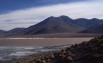 Comme je l’ai dit plus haut, nous avons fait deux jours d’acclimatation sur les flancs du volcan Láscar (avant d’aborder la suite du parcours qui se situe presque exclusivement à plus de 4000 m d’altitude). Ces deux jours, qui n’étaient pas les plus intéressants sur le plan touristique, furent aussi ceux où le temps était le plus médiocre ; car, s’il pleut peu en Atacama, il arrive que le temps se couvre, surtout au niveau de la chaîne des volcans. Le volcan Láscar présente la particularité d’être en activité, chaque éruption se caractérisant par le déversement de coulées pyroclastiques (comme pour le Vésuve ou la montagne Pelée). La dernière éruption datait de 1993, mais quelques signes (notamment l’épaisse fumée au sommet) faisaient craindre la venue prochaine d’une nouvelle éruption. Le poste de police nous a néanmoins autorisés à nous balader sur ses flancs, à condition de ne pas faire le sommet.