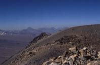maintenant vers la laguna Verde ![]() Et maintenant que nous avons retrouvé notre cher Licancábur, il ne nous reste plus qu’à monter dessus ! C’est la bavante du voyage, celle qui a progressivement obnubilé tous les esprits (et la plupart des conversations) au fur et à mesure que le voyage avançait ! Un dénivelé de 1400 m en montée, une broutille somme toute, mais avec un départ à 4500 m pour arriver donc à 5916 m. La montée se fait le long de la petite tache blanche que l’on voit sur la photo précédente, sur la pente du volcan vers la gauche, et qui est en fait un névé situé dans un petit creux. Plus exactement, on monte par la crête située juste sur la droite et l’on redescend par le névé. Comme sur la plupart des volcans, la pente s’effrite, la montée est donc particulièrement pénible puisqu’on recule d’un pas quand on avance de deux. Il y a de plus un petit raidillon aux 2/3 de la montée. Cela étant dit, la vue sur la laguna Verde selon un angle qui se transforme progressivement, offre un lot de compensation. Partis à la frontale à 5h30 du matin, nous mettrons environs 4 heures pour monter. De là-haut, nous avons une vue exceptionnelle dans toutes les directions, surtout vers l’est (par où nous sommes montés) d’où nous dominons entièrement la laguna Verde : ![]() De l’autre côté du volcan, c’est le Chili. On domine entièrement le désert d’Atacama où se déroulait le début de notre voyage. Il est à noter que la montée par ce versant (au demeurant miné) eût présenté un dénivelé deux fois plus important.