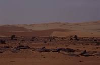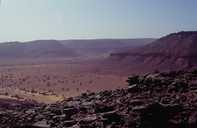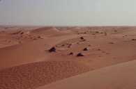 ![]() La mosquée de Chinguetti dans le vieux quartier, le 19 mars 2000 ![]() Paysage du cordon de Zerga, le 24 mars 2000 Mauritanie : Ouadane, Chinguetti, AtarCe n’était à l’époque que la seconde fois que je me rendais au Sahara. L’Algérie étant alors fermée, la Mauritanie était la destination qui montait, avec depuis peu des charters atterrissant directement à Atar, en plein désert. C’est l’un de ces charters que j’ai emprunté à l’aller (départ très tôt, une escale technique à Rabat et aucune « prestation » à bord !), le retour s’étant fait sur vol régulier — air Afrique, ce qui était une autre sorte d’aventure…). Quatre heures d’avion jusqu’à Atar, le même temps qu’il m’avait fallu pour rejoindre Roissy de Bordeaux, en train (l’un des nombreux inconvénients d’habiter la province !). Cette ville de Bordeaux que nous avons survolée à plus de 10 km d’altitude, je me suis un temps demandé quelle pouvait bien être cette jolie petite bourgade… C’est le seul de mes voyages où le Sahara était vraiment tel que se l’imaginent les néophytes : des dunes de sable à perte de vue ! Dunes dans lesquelles il est d’ailleurs assez malaisé de marcher, ce qui rendait ce trek assez physique. Étant données l’époque tardive (deuxième moitié de mars) et la latitude assez basse, la chaleur était assez conséquente ce qui nécessitait d’assez longues siestes en milieu de journée. Corollaire, beaucoup de photos ont été prises en lumière rasante ce qui les rend plutôt réussies. Exception faite du premier jour du voyage où j’ai réellement fait une erreur de débutant : oublier de charger la pellicule dans mon appareil ! Je m’en suis heureusement aperçu assez vite. Le voyage constituait à relier à pied trois villes du Sahara mauritanien : Ouadane (quasiment en ruines), Chinguetti (شنقيط, célèbre pour ses manuscrits arabes médiévaux que possèdent nombre de ses habitants, dans des conditions de conservation pas toujours idéales), et Atar (أطار), la plus peuplée des trois, la capitale de la région (là où nous arrivions en avion). Tout ce voyage se déroulait en bordure de l’immense erg Ouarane, vaste zone inhabitée qui s’étend jusqu’au Mali. À l’exception toutefois des deux derniers jours (à proximité d’Atar), où nous rejoignons la région montagneuse de l’Adrar. Je n’avais pas de GPS pour ce voyage, et ne possède pour toute carte que la carte IGN au 1/1 000 000e. Par ailleurs le terrain contient peu de points de repère facilement identifiables, si l’on excepte les trois ou quatre derniers jours (cordon de Zerga et Adrar), et les points fixes que constituent les villes d’Ouadane et de Chinguetti. La localisation de beaucoup de mes photos est donc très incertaine : je ne connais même pas l’emplacement de certaines oasis comme El Rhéouya, Tanouchert ou Lagueïla. Venons-en maintenant à la chronologie du voyage, avec pour commencer, comme je l’ai dit, une journée sans photo. Quelques heures de 4 × 4 nous ont donc menés à Ouadane, avec en cours de route une nuit de bivouac à El Rhéouya. Nous nous sommes à deux reprises arrêtés pour prendre le thé sous la raïma (tente) des nomades. Ouadane est une ville datant du Xe siècle, très prospère au Moyen-Âge où elle était la rivale de Chinguetti. Mais elle fut quasiment abandonnée au XVIIe siècle, et il ne reste plus aujourd’hui que quelques centaines d’habitants. Les maisons de Ouadane, construites en pierre, sont le plus souvent en ruines, mais il arrive en se promenant dans les ruelles de trouver une maison habitée. À l’instar de Chinguetti, Ouadane contient de nombreux manuscrits médiévaux (une grosse majorité d’entre eux étant des commentaires du Coran, mais une petite partie traite aussi de sujets académiques). La plupart de ces manuscrits sont situés chez des particuliers, où il se conservent assez mal (sable, termites, humidité). Une association tente de les regrouper dans une bibliothèque pour mieux les conserver et essayer de les restaurer (et de les dater), mais il faut convaincre les propriétaires ce qui n’est pas évident. Ce n’est pas de Ouadane que nous avons démarré le trek mais de la petite palmeraie de Tanouchert, à moitié envahie par les dunes. C’est là que j’ai pu prendre mes premières photos. Nous nous sommes baladés quelque temps dans l’oasis et dans le village, avant d’installer notre second bivouac dans les environs. ![]() Les choses sérieuses ont commencé le lendemain matin : deux semaine de randonnée chamelière dans le sable ! Nos chameaux nous ont rejoints au petit matin. Notre itinéraire suivait peu ou prou la lisière de l’erg Ouarane, à l’intérieur duquel très peu de monde s’aventure. ![]() Nous avons vu une trace de vipère à cornes durant la matinée : il faut dire que la saison était déjà bien avancée ! La monotonie de ces dunes se trouve (fort peu !) brisée par le massif gréseux d’Herrour : quelques tas de cailloux émergeant avec peine des dunes de sable. Notre guide, assez féru en géologie (ce qui n’est pas si courant parmi les guides) nous a affirmé que ce massif aurait une origine glaciaire (la Mauritanie se serait retrouvée au pôle sud à l’ère primaire puis aurait dérivé). J’ai quand même trouvé cette théorie quelque peu fumeuse… ![]() Le jour suivant était une étape de liaison que j’ai trouvée un peu fastidieuse (avec beaucoup moins de relief). Nous avons campé en haut d’une dune isolée, sur laquelle nous avons failli avoir de la pluie. Les chameliers ont joué entre eux à un sorte de jeu de dames, dans le sable, en se servant brindilles et de crottes de chameau en guise de pions. ![]() Et j’ai encore moins aimé le jour d’après : après un passage dans les ruines d’un village du Xe siècle (photo) dont je n’ai pas retenu le nom, nous sommes revenus camper à El Rhéouya,