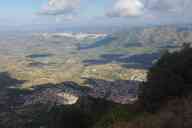 Nous avons démarré la randonnée en montant du côté droit de la colline. Nous sommes d’abord passés dans une ancienne ferme en cours de restauration, puis dans une zone d’habitations troglodytes. ![]() ![]() Après une première montée en lacets dans la forêt, halte à une sorte de belvédère. On peut deviner en arrière plan, sur certaines photos, le contrefort de la pointe Corrasi (1463 m), le point culminant du massif du Sopramonte dont nous effectuerons l’ascension le jour suivant. ![]() Nous avons ensuite traversé une falaise par une sorte de crevasse de calcaire caractéristique (suivie d’une sorte de balcon naturel assez étrange). Pas de difficulté technique, du moins pour l’instant. ![]() ![]() Ensuite nous arrivons très vite au sommet de la colline, au bord d’une caverne effondrée. Marche sur un sol calcaire extrêmement rugueux, il y a intérêt à avoir de bonnes chaussures ! (c’est surtout un problème pour les guides qui en usent une paire par saison…). ![]() ![]() ![]() ![]() J’ai mentionné l’existence d’une caverne effondrée (doline) : c’est dans cette caverne que se trouvent les ruines de Tiscali. L’accès au site est payant, il y a un gardien (et quelques touristes). ![]() On trouve au fond de la caverne quelques traces de huttes nuragiques, lesquelles n’ont été que très sommairement fouillées. Le site a été dégradé par le passage des troupeaux de chèvres (l’endroit n’était pas du tout protégé il y a encore une dizaine d’années). La culture nuragique, dont on sait en fait peu de choses, s’est développée en Sardaigne à l’âge du bronze, vers le XVIIIe siècle av. J.-C. Elle soit son nom aux nuraghes, sortes de tours tronquées émanant de cette culture et qui parsèment l’île (mais nous n’en avons pas vue une seule !) ![]() ![]() La caverne présente à un endroit une ouverture, une sorte de fenêtre d’une dizaine de mètres de haut, par-dessus laquelle nous étions précédemment passés sans nous en rendre compte ! Cette ouverture permettait aux Nuraghes d’observer la vallée sans être aperçus du bas. ![]() Pour effectuer la descente, notre guide nous annonce que nous prendrons un raccourci qui nous permettra de gagner une demi-heure. Petit détail, cet itinéraire comporte deux passages difficiles. Lequels nécessitent un peu de désescalade (on trouve un câble ainsi qu’une échelle de bois). Ce n’était pas trop vertigineux finalement, en tout cas j’ai connu bien pire dans d’autres voyages (par exemple, pour ne citer que les plus récents, à Madère ou en Bulgarie). De retour aux véhicules, nous avons pique-niqué sur une aire aménagée dans la forêt (pas de photo).